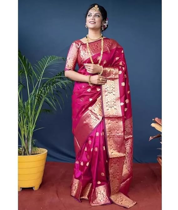 Intricate Zari Weaving: Features detailed Zari woven patterns that add a touch of traditional elegance and enhance the overall opulence of the saree.