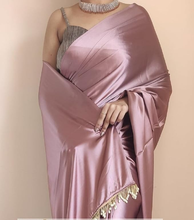 Saree Fabric : Satin Silk || Blouse Fabric : Satin Silk . The blouse worn by the model is for modeling purposes only. A blouse is made of the same fabric and color as a saree.