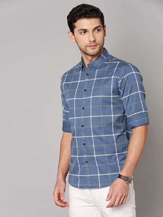 Men's Checkered Slim Fit Cotton Casual Shirt